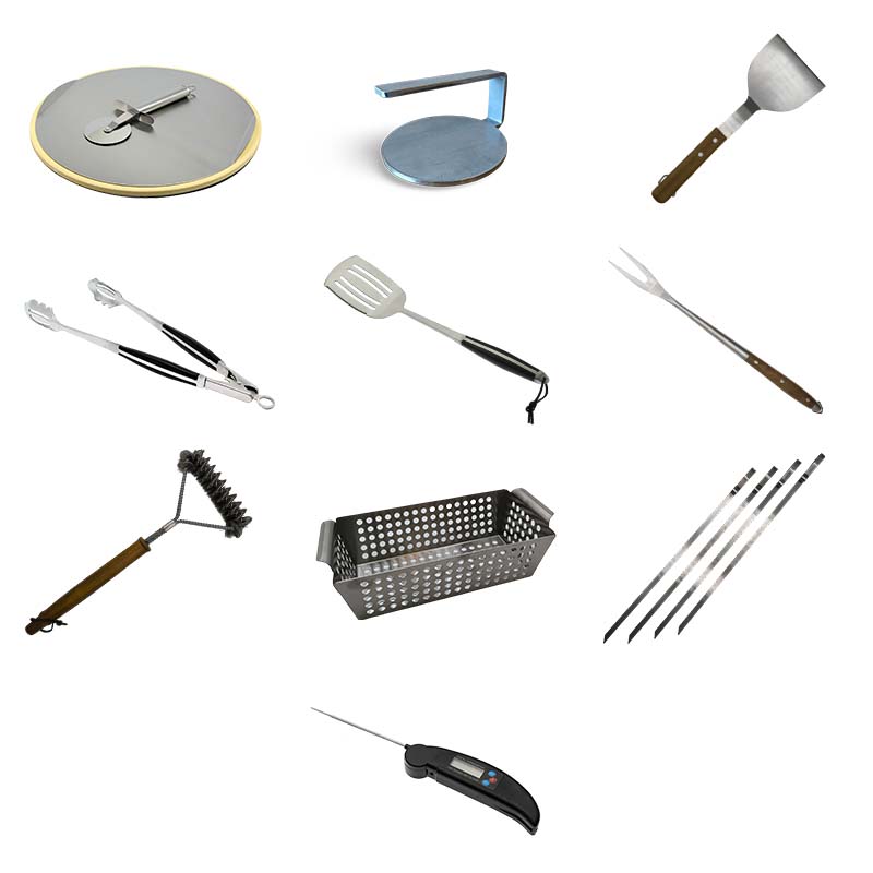 Komplettera grillen med vårt grillkit! Detta grillpaket innehåller tio praktiska grilltillbehör.