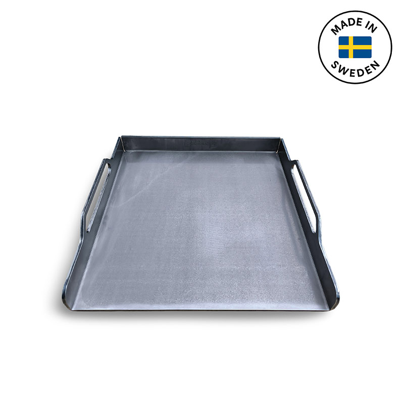 Förenkla matlagningen med Ulvaryd Stekbord! Detta stora och robusta stekbord är 40 x 40 cm och utmärkt för matlagning till ett större sällskap. Stekbordets platta form och resta kanter håller maten på plats samtidigt som den öppna framkanten möjliggör för fett att rinna ut (detta stekbord är därför optimalt för utomhusbruk). Stekbordet är tillverkat i svenskt varmvalsat stål i Småland och gör sig bäst på grillen och över öppen eld. Det har även två praktiska handtag för att underlätta förflyttning.