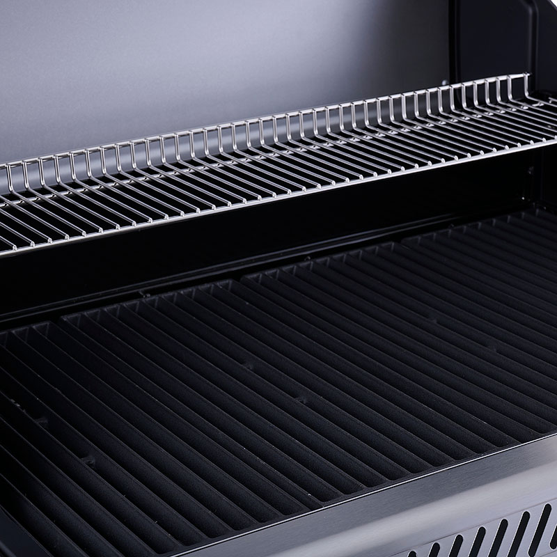 Med en robust grillyta på 74 x 46 cm och en extra matzon i sidobordet är det inga problem att bjuda hela grannskapet på grillfest. X1 är utrustad med fyra grillgaller i extra tjockt gjutjärn, ett material känt för sin värmelagringsförmåga, jämna värmefördelning och långa hållbarhet. Tack vare den kompletterande värmehyllan håller maten sig varm fram till servering.