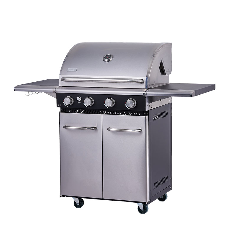 Z1 tänds snabbt via elektrisk tändning och är redo att användas på bara några minuter. De fyra brännarna låter dig skapa olika värmezoner vilket gör det lätt att laga flera rätter samtidigt på olika temperaturer. Grillen har dubbelmantlat lock med inbyggd termometer vilket säkerställer optimal värmeisolering och full kontroll över grillningen.